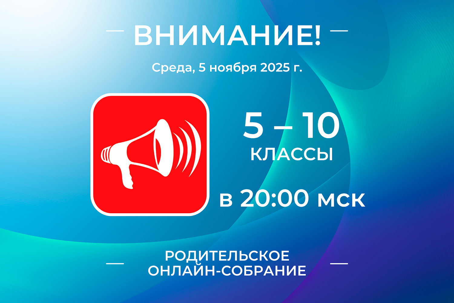 Уважаемые родители обучающихся 5-10 классов! Приглашаем вас на дистанционное родительское собрание сегодня, 5 ноября, в 20:00. Вход в вебинарную комнату Ждём вас!