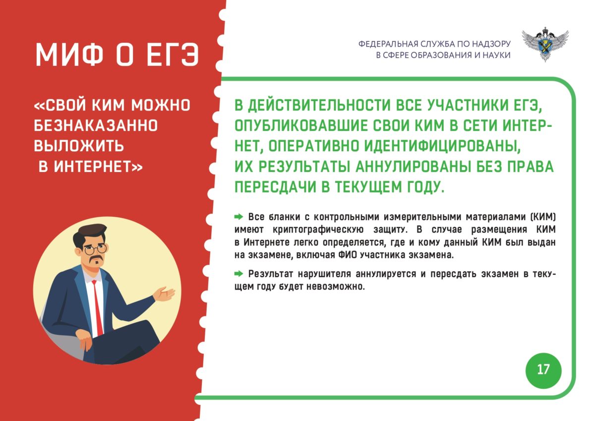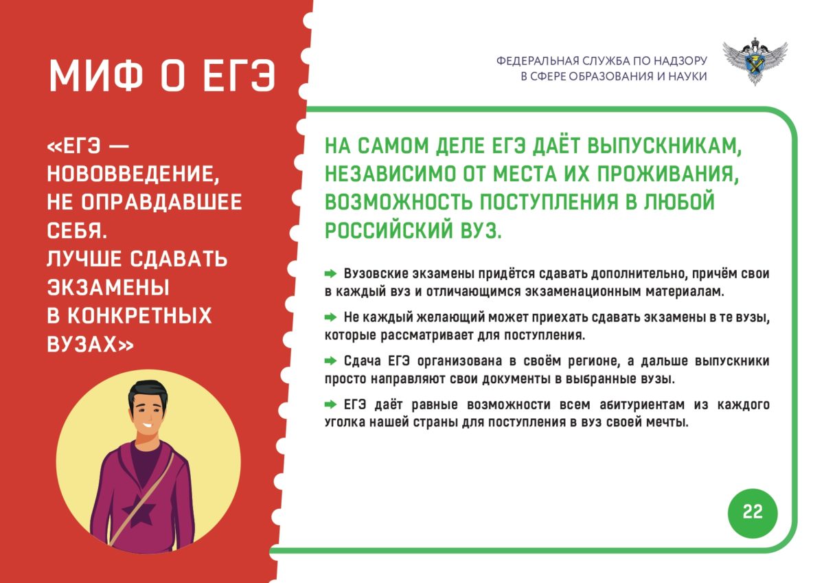 22 самых распространённых заблуждения о государственной аттестации в 11 классе – в информационных карточках, подготовленных Рособрнадзором.